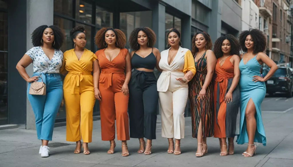 Przy pełniejszym środku sylwetki kluczowe są miękkie, lejące tkaniny i pionowe linie. Sukienki empirowe, kroje kopertowe, tuniki o linii A i kardigany noszone rozpięte tworzą smukłą kolumnę. Dekolt w serek wysmukla i równoważy ramiona.